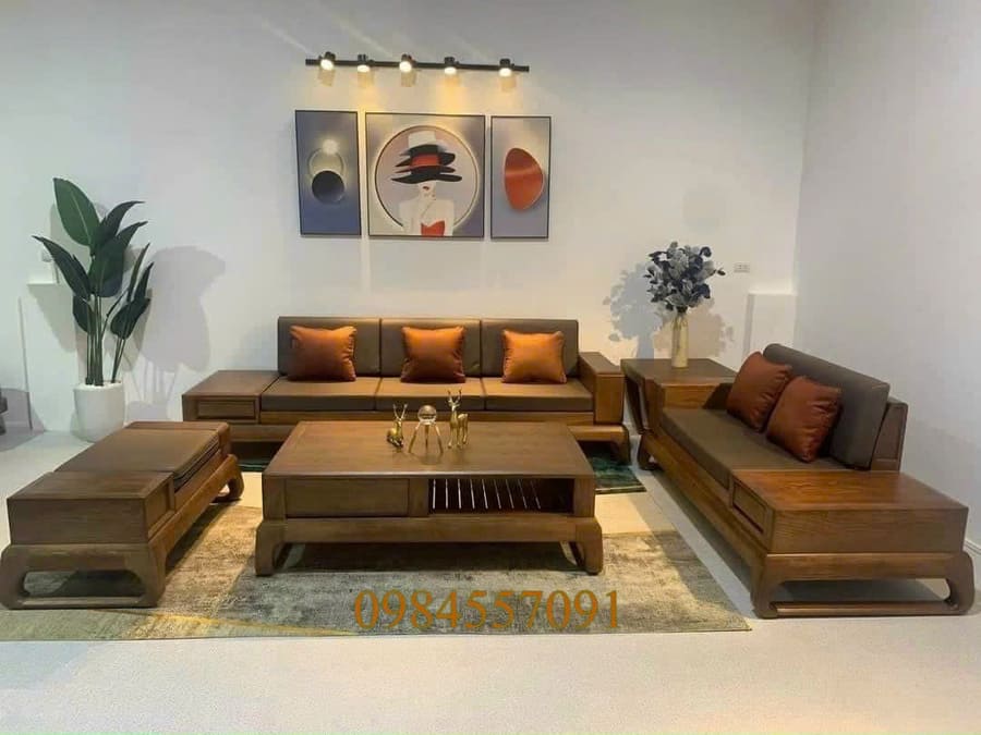 Bộ đệm ghế salon gỗ nhà anh Trung- An Khánh
