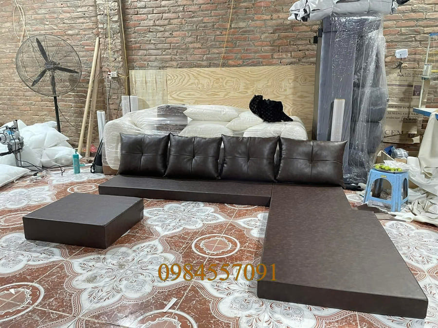 Anh Quân làm đệm bông ép cho ghế sofa màu nâu