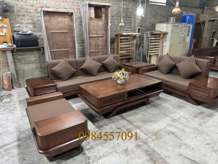 Ghế sofa gỗ góc chữ L được đặt đệm ghế xinh xắn